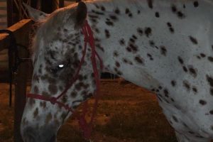 This is Apple, a beautiful Appaloosa mar. She had a minor accident one night that required some stitches near her eye. Dr. Morrison was able to stitch the area …