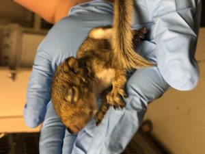 The past few weeks we have had a lot of wildlife come into the clinic, especially orphans such as squirrels foxes, racoons, opossums and owl. We are the only veterinarians in town that have a wildlife rehabilitation license. This means we take care of the orphans or injured animals by rehabilitating them with the goal to release them back into the wild. We often have people ask if they can foster these animals. The answer to this question is no. These animals can carry rabies, lice, parasites and other diseases. The people who care for these animals have the training on how to care for and handle them. They also have a rabies vaccine. The best way people can help the wildlife is to donate to the wildlife fund.